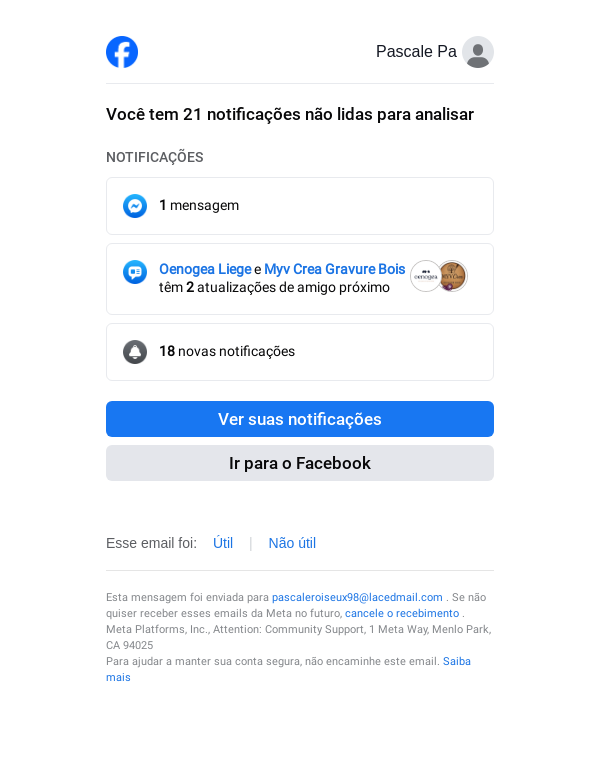 To: pascaleroiseux98@lacedmail.com From: reminders@facebookmail.com Received: 2025-12-10 08:36:46.590444