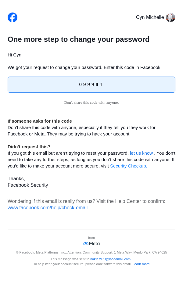 From: security@facebookmail.com