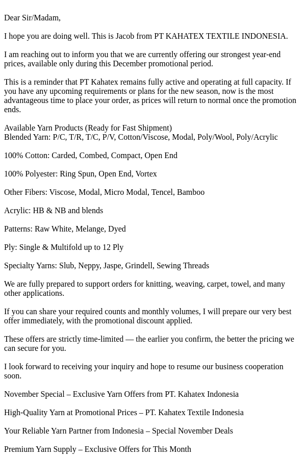 From: sales@Ptkahatextileindo.com