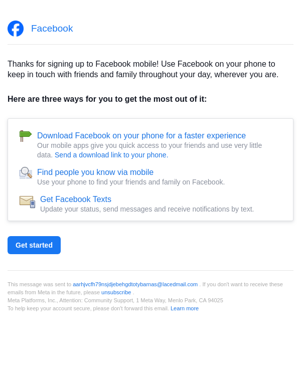 To: aarhjvcfh79nsjdjebehgdtotybarnas@lacedmail.com From: registration@facebookmail.com Received: 2025-12-18 07:17:30.278709