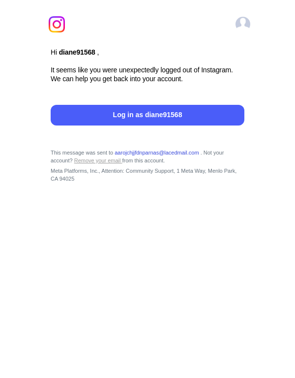 To: aarojchjjfdnparnas@lacedmail.com From: no-reply@mail.instagram.com Received: 2025-12-19 13:40:46.044622