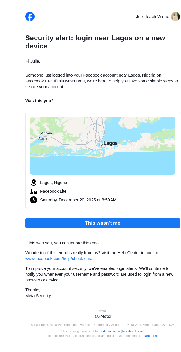 Did you just log in near Lagos on a new device?