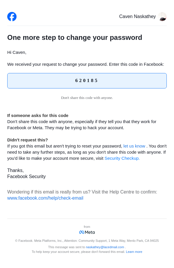 From: security@facebookmail.com