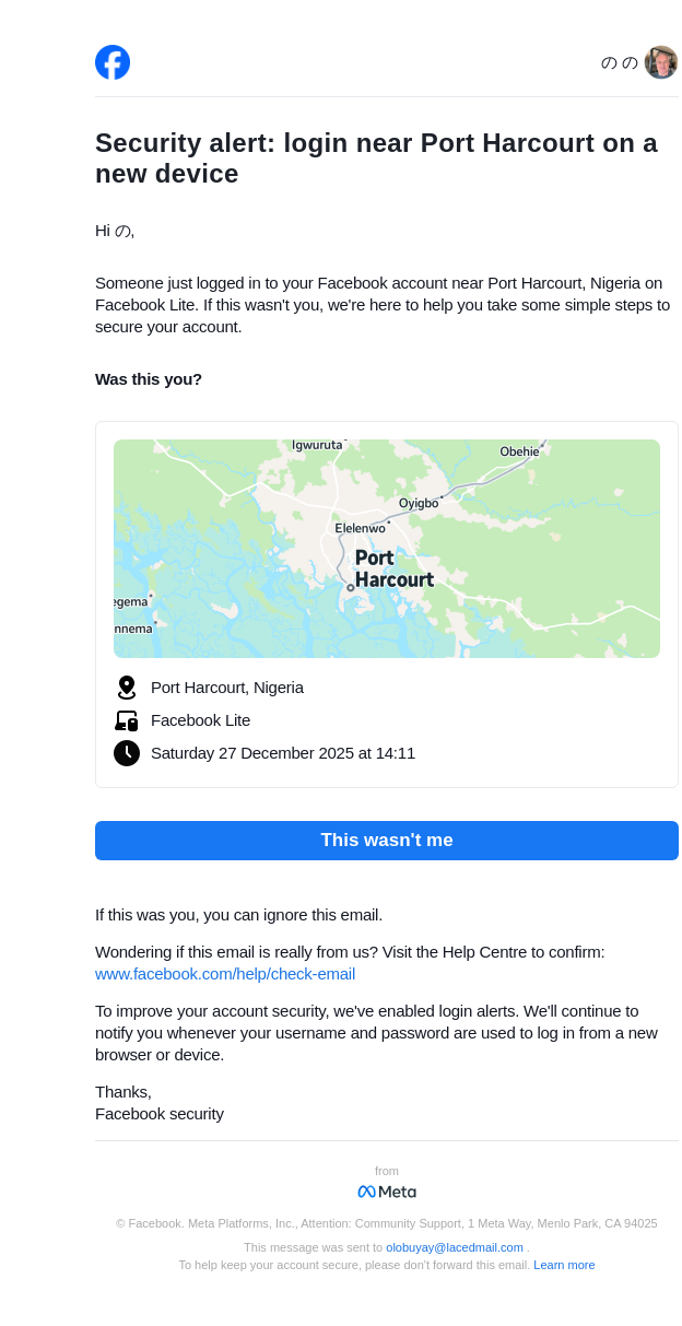 Did you just log in near Port Harcourt on a new device?