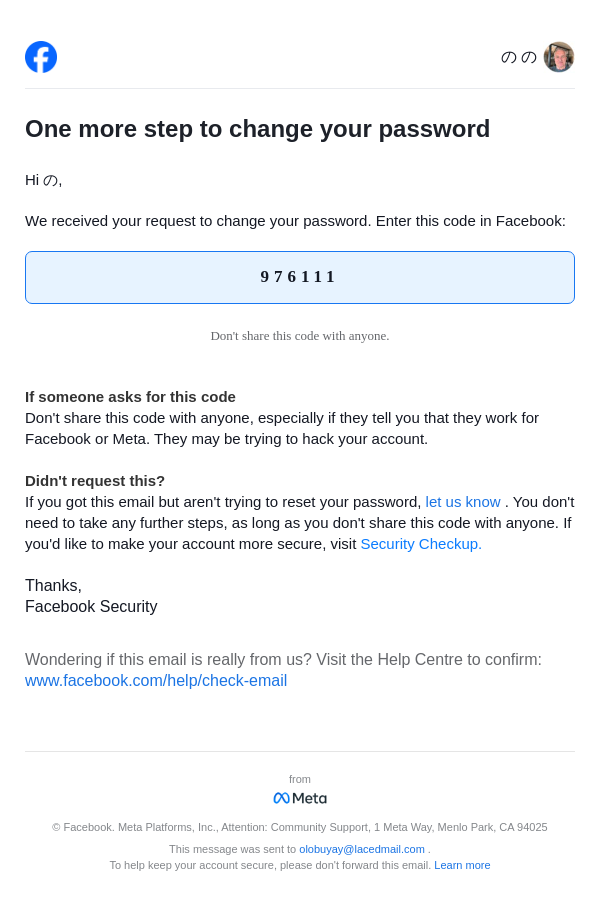 976111 is your password reset code