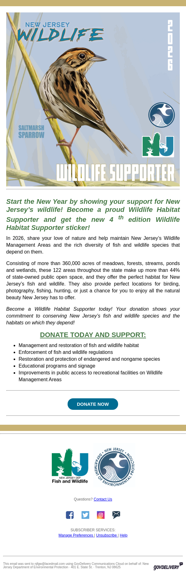 To: njfgw@lacedmail.com From: NJFishandWildlife@donotreply.dep.nj.gov Received: 2026-01-02 15:03:49.783813