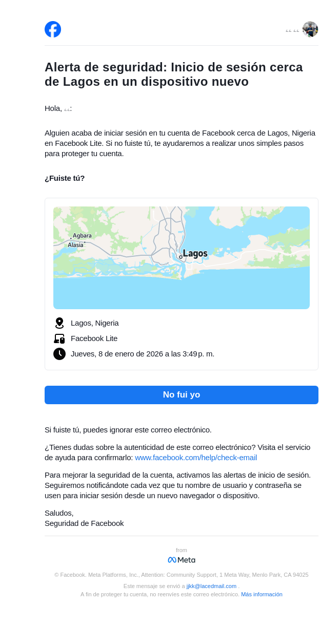 ¿Acabas de iniciar sesión cerca de Lagos en un dispositivo nuevo?