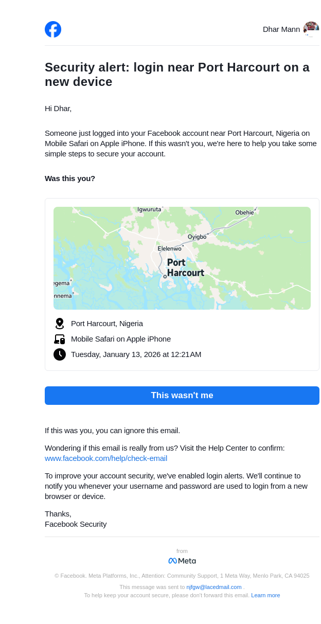 Did you just log in near Port Harcourt on a new device?