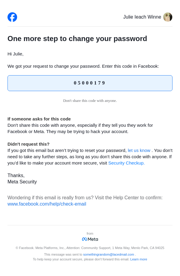 To: somethingrandom@lacedmail.com From: security@account.meta.com Received: 2026-01-14 22:53:55.932989