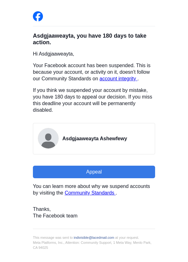 Action needed on your Facebook account