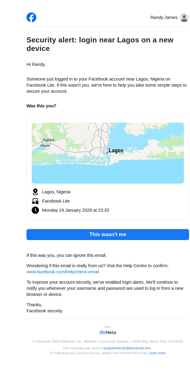To: randyjamesmith@lacedmail.com From: security@facebookmail.com Received: 2026-01-19 23:34:20.368533