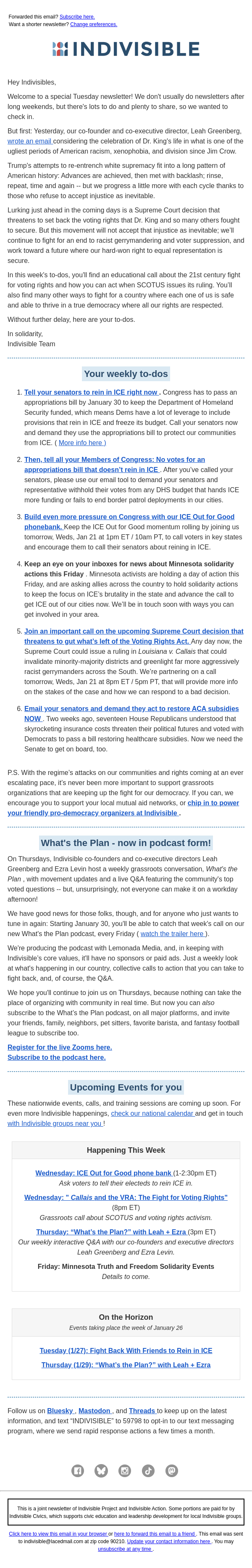 Indivisible updates + actions: Reining in ICE, solidarity with Minneapolis, protecting voting rights and more