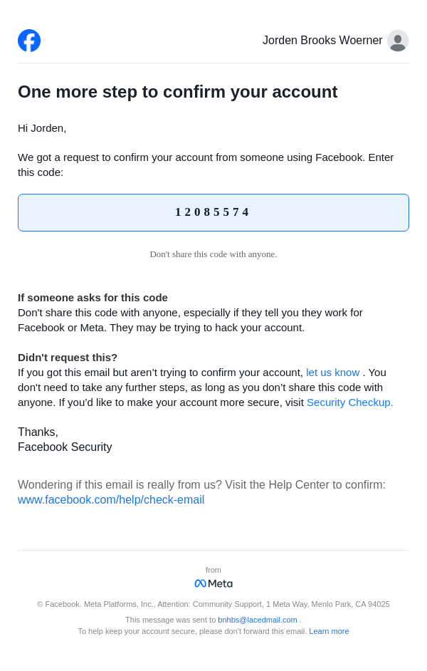 From: security@facebookmail.com