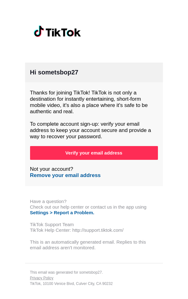 To: somethingrandom@lacedmail.com From: noreply@account.tiktok.com Received: 2026-01-21 21:50:38.275520