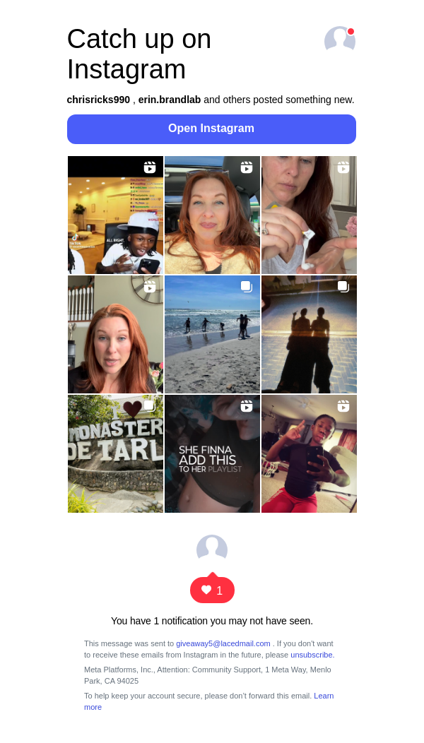 To: giveaway5@lacedmail.com From: posts-recaps@mail.instagram.com Received: 2026-01-22 12:59:07.286481