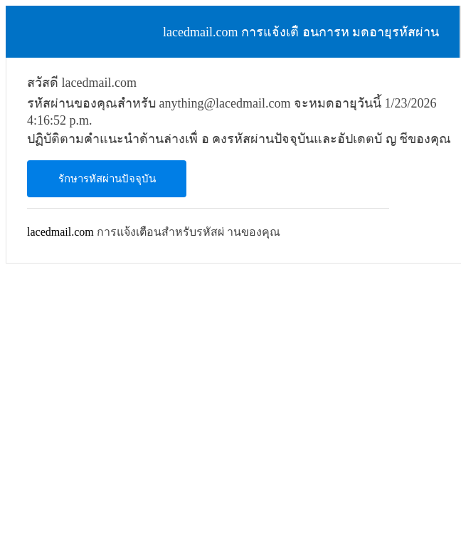 แจ้งเตือนวันหมดอายุรหัสผ่านวันนี้ 1/23/2026 4:16:52 p.m.