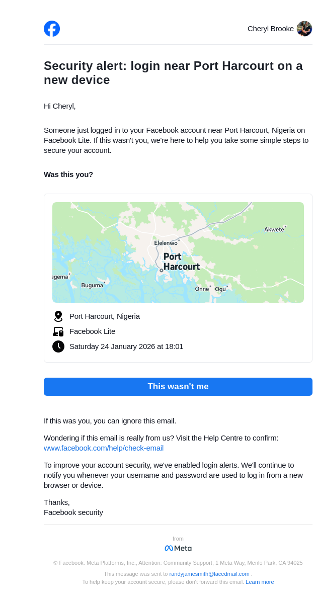 To: randyjamesmith@lacedmail.com From: security@facebookmail.com Received: 2026-01-24 18:01:55.631297