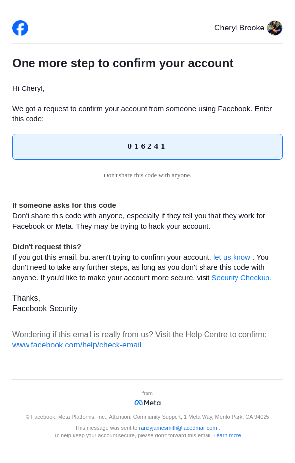 To: randyjamesmith@lacedmail.com From: security@facebookmail.com Received: 2026-01-24 23:57:12.307786
