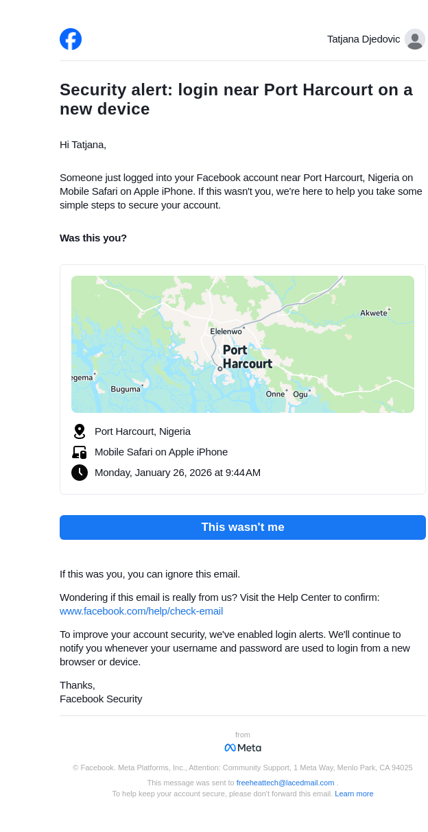 Did you just log in near Port Harcourt on a new device?