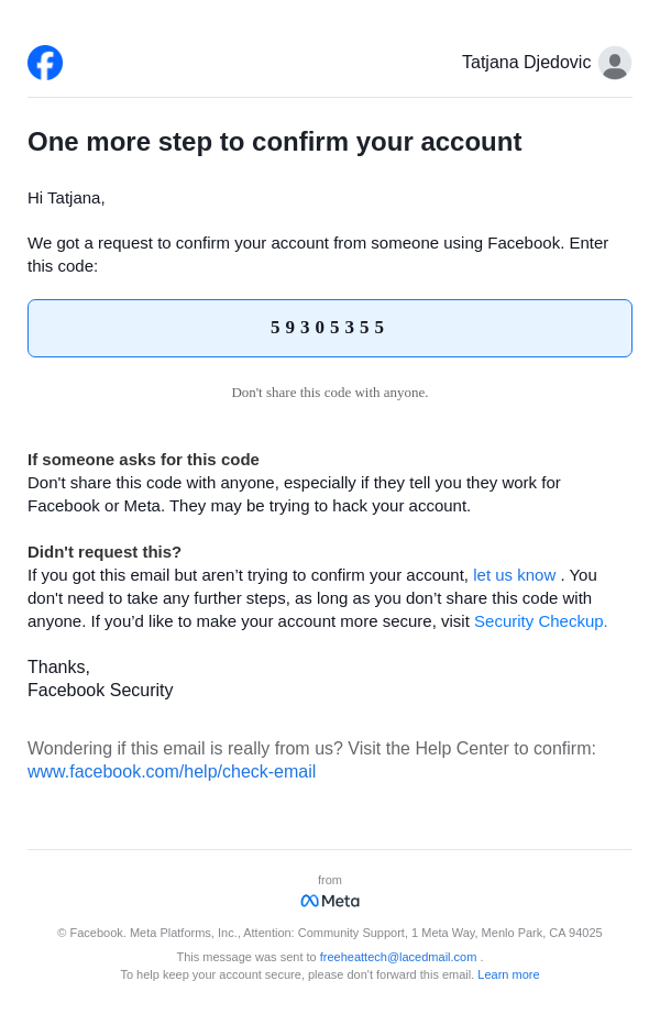 From: security@facebookmail.com