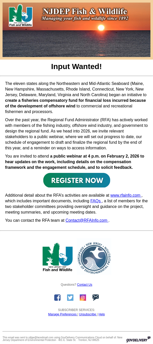 To: njfgw@lacedmail.com From: NJFishandWildlife@donotreply.dep.nj.gov Received: 2026-01-26 21:26:54.906215