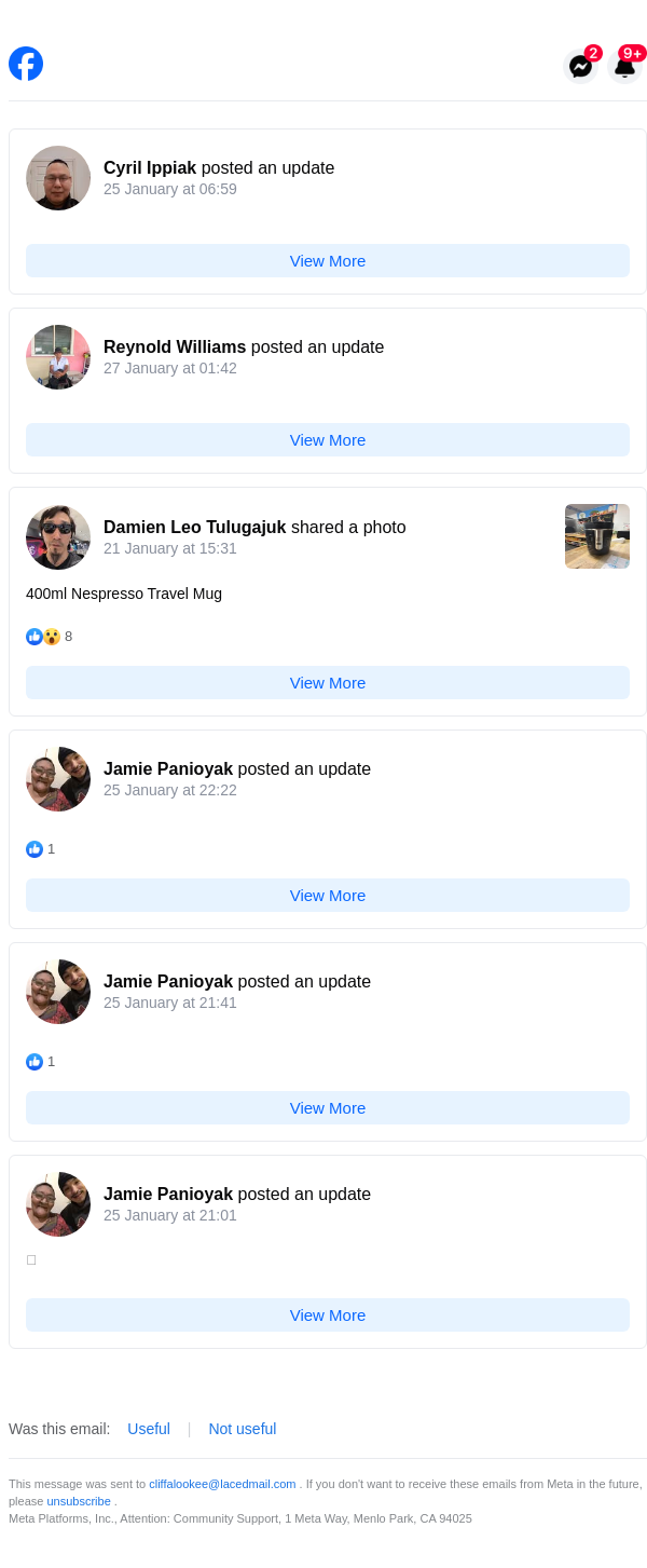 To: cliffalookee@lacedmail.com From: notification@facebookmail.com Received: 2026-01-27 20:00:20.267578
