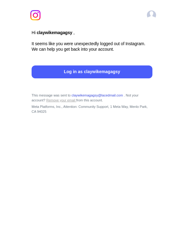 To: claywikemagagsy@lacedmail.com From: no-reply@mail.instagram.com Received: 2026-01-30 08:59:24.492189