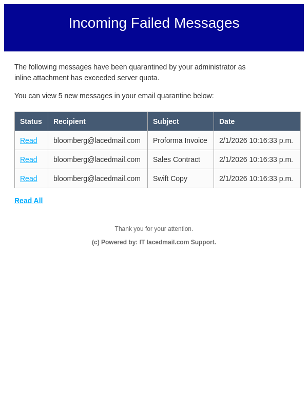 Incoming Mails on Hold for bloomberg@lacedmail.com