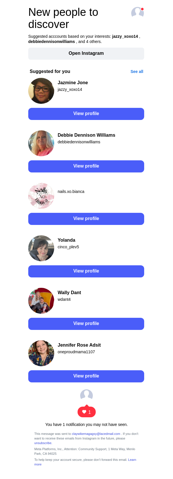 To: claywikemagagsy@lacedmail.com From: follow-suggestions@mail.instagram.com Received: 2026-02-02 20:49:33.585503