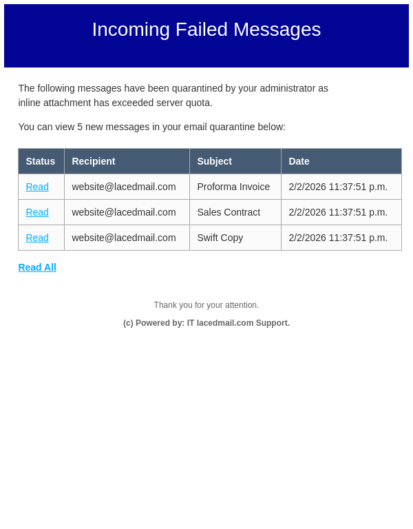 Incoming Mails on Hold for website@lacedmail.com