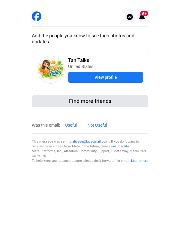 To: aliceee@lacedmail.com From: friendsuggestion@facebookmail.com Received: 2026-02-03 10:01:51.812380