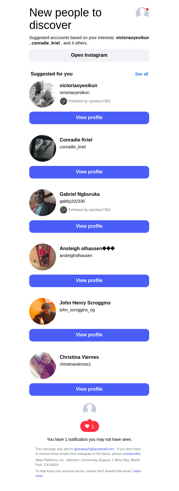 To: giveaway5@lacedmail.com From: follow-suggestions@mail.instagram.com Received: 2026-02-05 12:31:23.819402