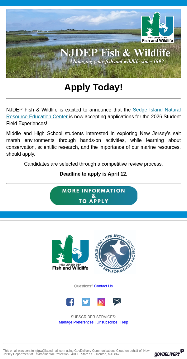 To: njfgw@lacedmail.com From: NJFishandWildlife@donotreply.dep.nj.gov Received: 2026-02-06 15:03:52.606115