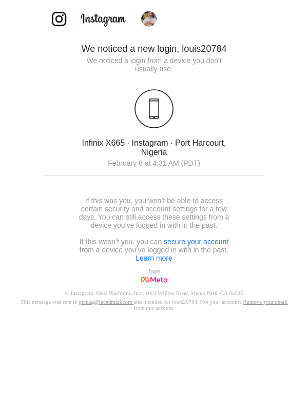 New login to Instagram from Instagram on Infinix X665