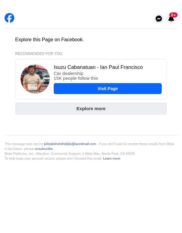 To: julieabshxhdhdjdjx@lacedmail.com From: pageupdates@facebookmail.com Received: 2026-02-10 16:08:01.865112