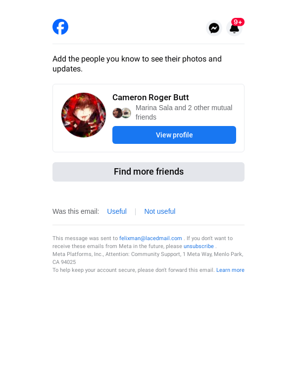 To: felixman@lacedmail.com From: friendsuggestion@facebookmail.com Received: 2026-02-10 17:17:01.555980