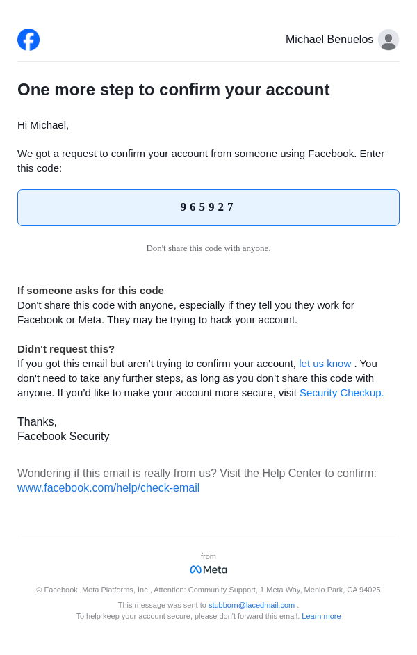 From: security@facebookmail.com