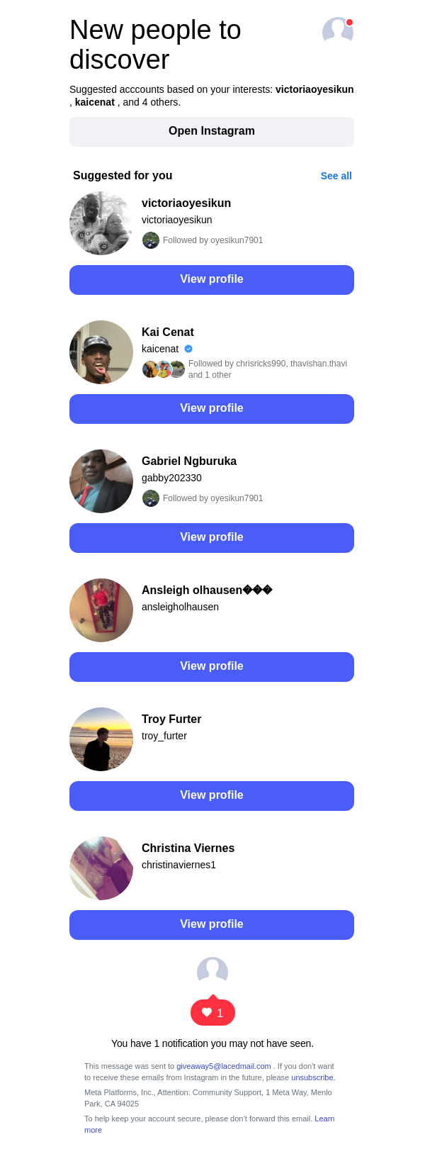 To: giveaway5@lacedmail.com From: follow-suggestions@mail.instagram.com Received: 2026-02-12 16:43:33.257769