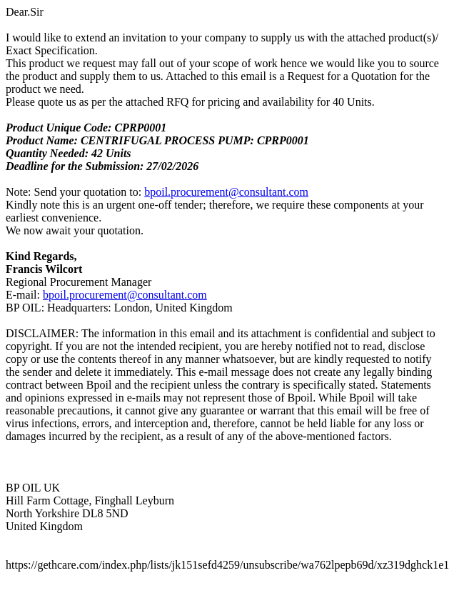 REQUEST FOR QUOTATION - URGENT (BP OIL GROUP LIMITED)