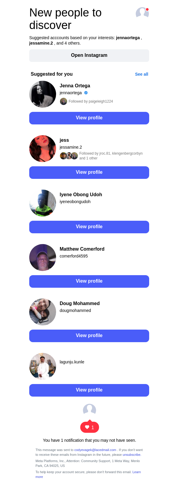 To: codyevagek@lacedmail.com From: follow-suggestions@mail.instagram.com Received: 2026-02-18 13:43:41.837592