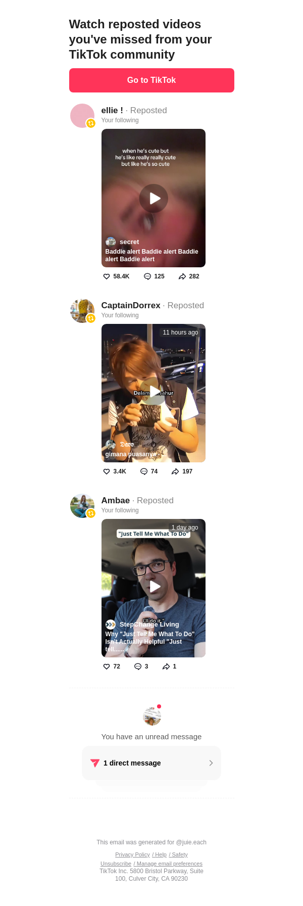 To: jullieleach242@lacedmail.com From: notification@service.tiktok.com Received: 2026-02-18 14:16:05.092277