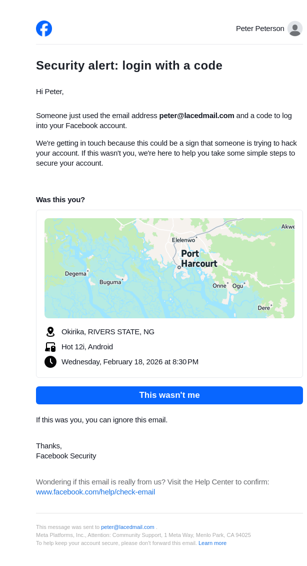 From: security@facebookmail.com