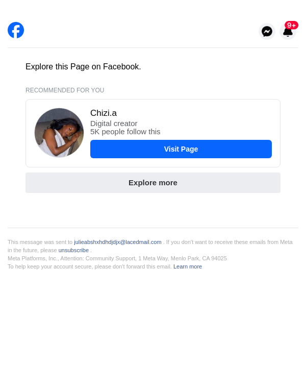 To: julieabshxhdhdjdjx@lacedmail.com From: pageupdates@facebookmail.com Received: 2026-02-19 11:27:07.795881