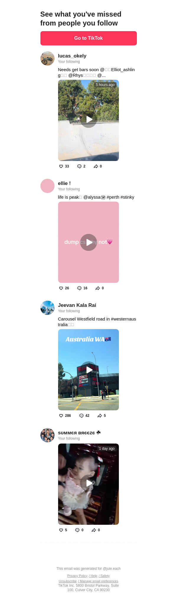 To: jullieleach242@lacedmail.com From: notification@service.tiktok.com Received: 2026-02-19 16:53:12.147057
