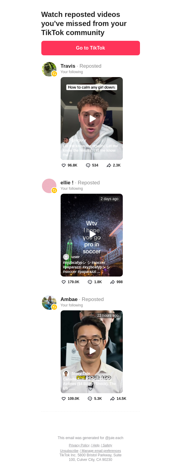 To: jullieleach242@lacedmail.com From: notification@service.tiktok.com Received: 2026-02-20 14:30:36.677207