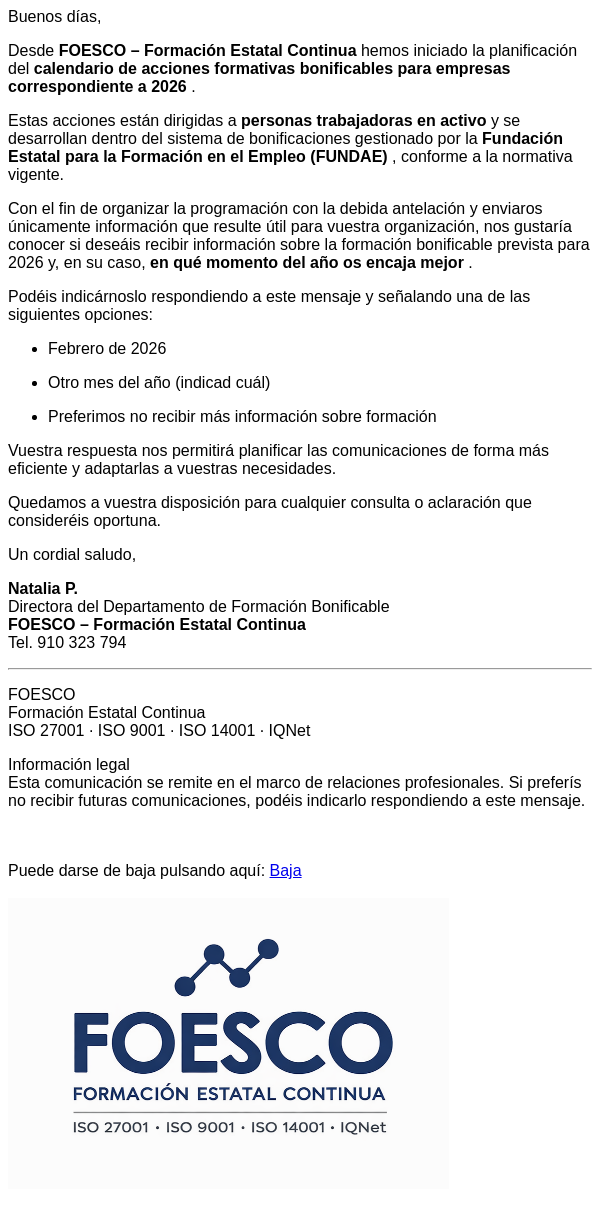 Formación 2026: indicadnos cuándo os interesa recibir información