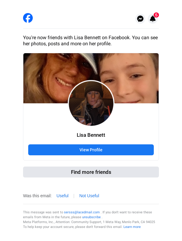 Lisa Bennett accepted your friend request