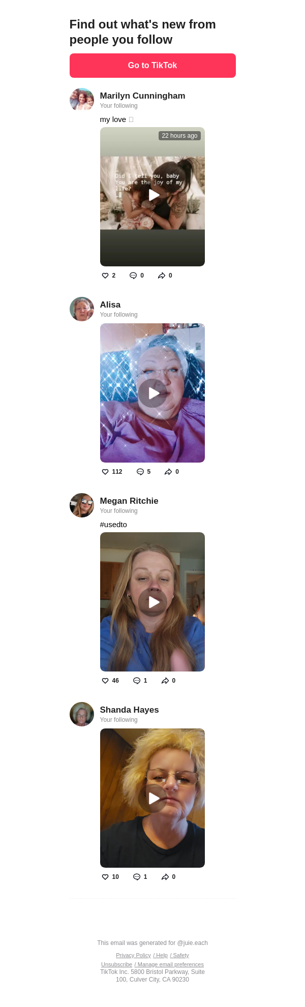 To: jullieleach242@lacedmail.com From: notification@service.tiktok.com Received: 2026-02-23 14:02:19.019982