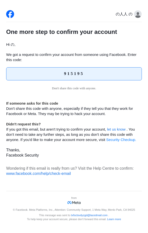 From: security@facebookmail.com