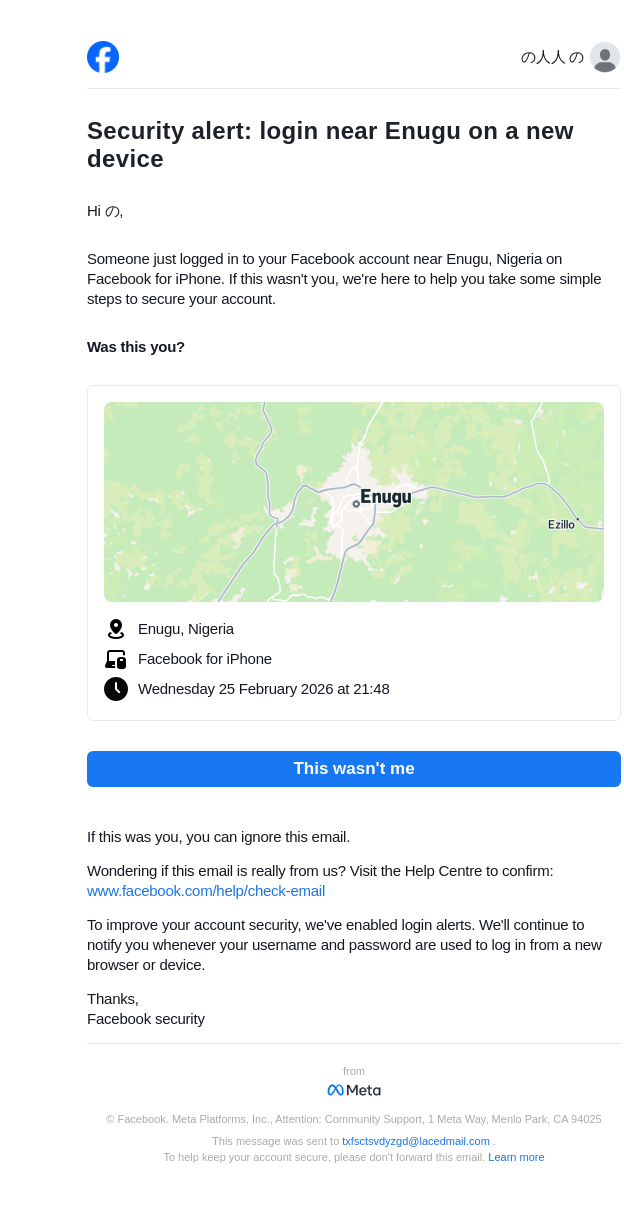 From: security@facebookmail.com
